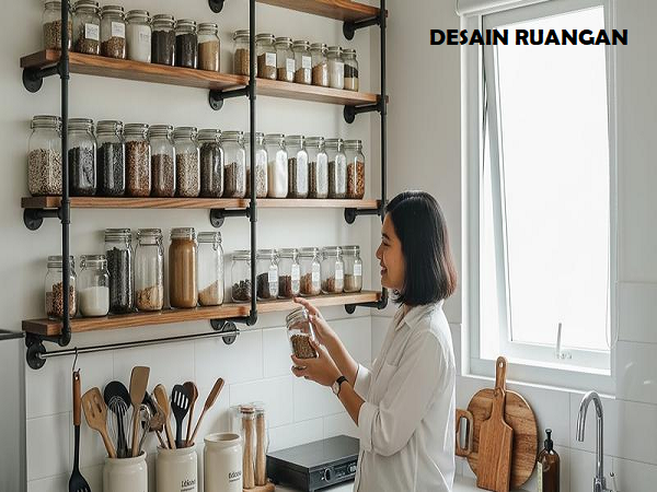 Desain Dapur dengan Rak Terbuka agar Peralatan Rapi